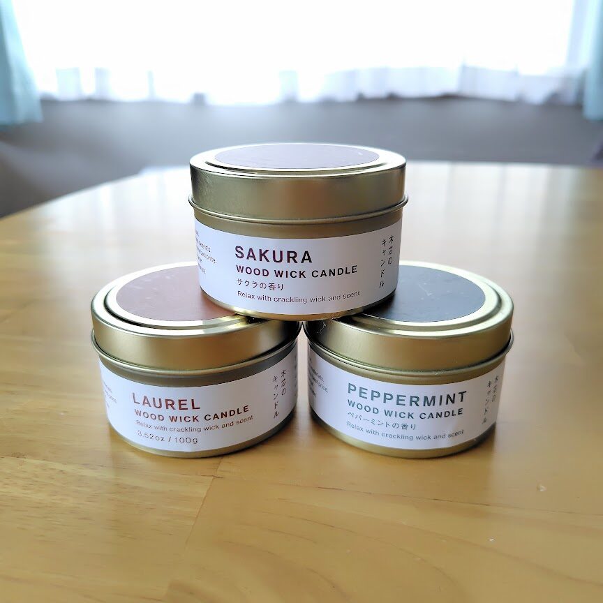 - 木芯キャンドル(桜・月桂樹・薄荷)