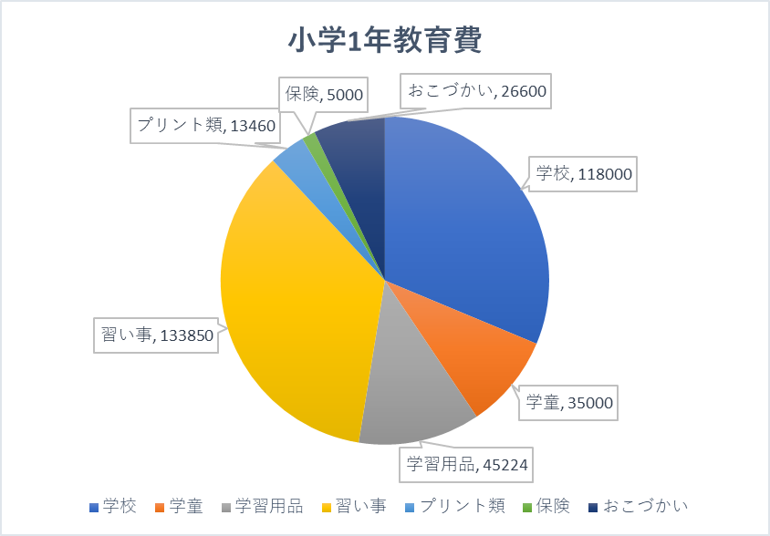 昨年、小学1年生の1年間にかかった教育費をあらためて計算してみました。